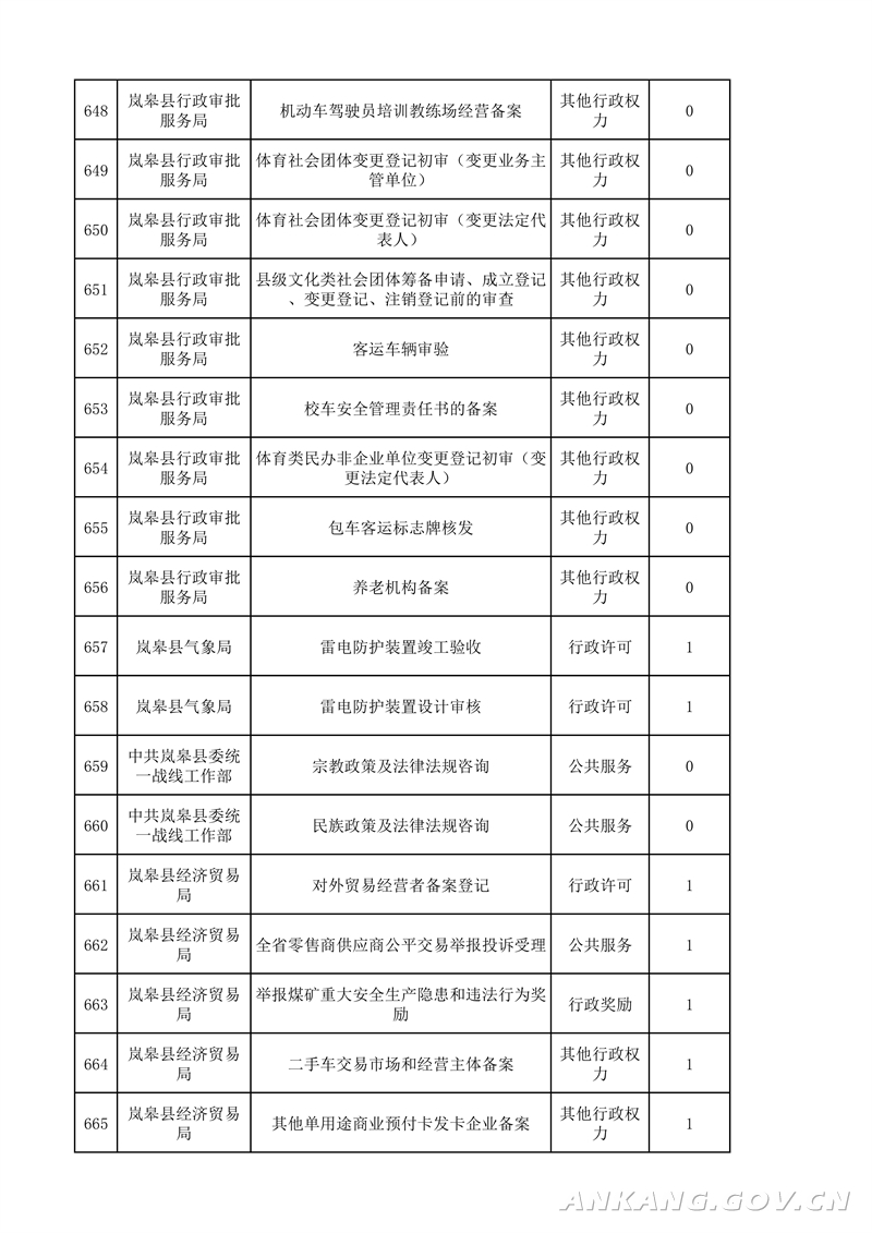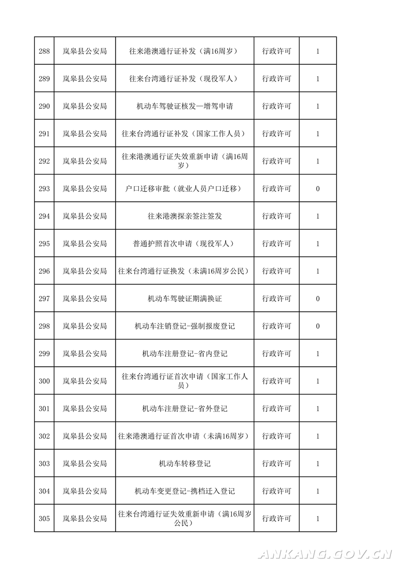 岚皋县“最多跑一次”事项清单(2021版)