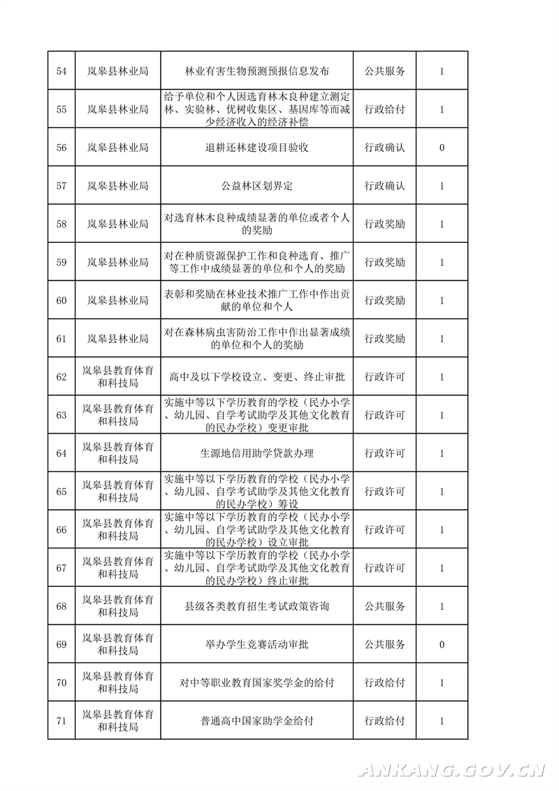 岚皋县“最多跑一次”事项清单(2021版)
